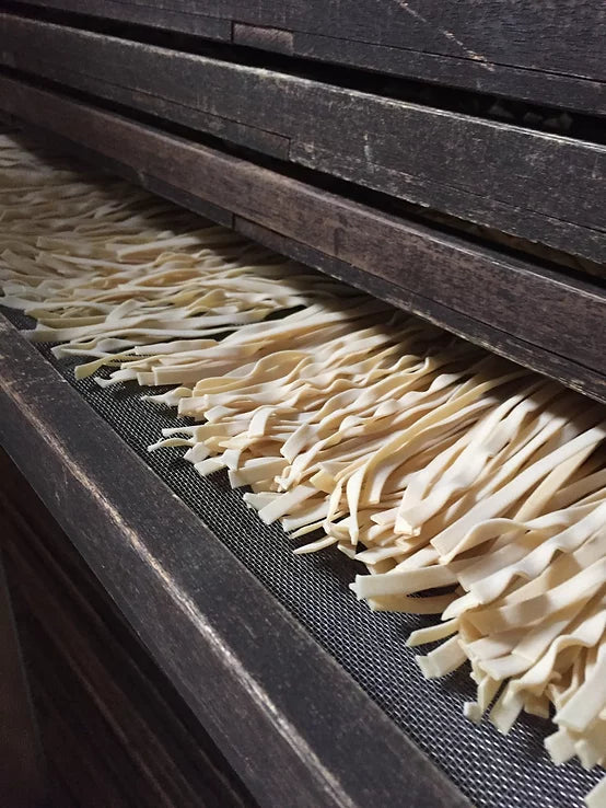 The slow drying process along with the use of premium ingredients, allows the fibres to keep their natural structures; benefitting both digestion and taste. L'Abruzzese's Pasta is dried at 35°- 40°C with air, compared to the 80º- 90°C used by large-scale commercial producers.