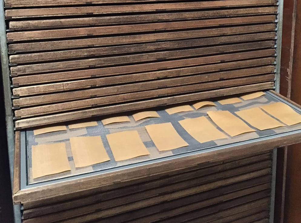 L’Abruzzese follows a strict slow air-drying process, anywhere from 40 to 48 hours; in comparison, commercial pasta is normally dried in 4 hours or less.