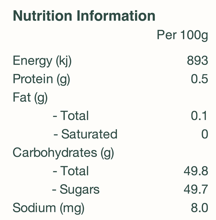Vegan‑friendly and naturally gluten‑free. No artificial colourings, no preservatives, no added flavourings.